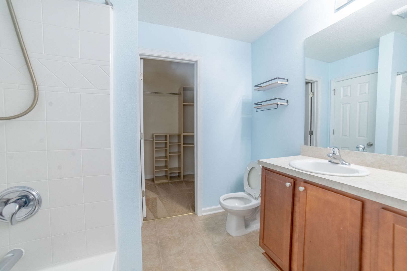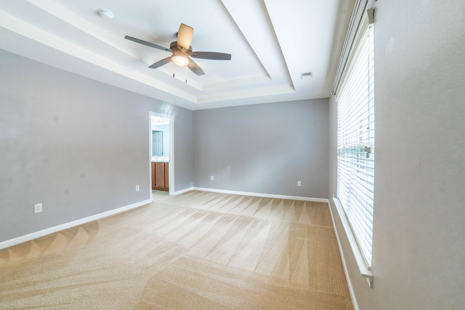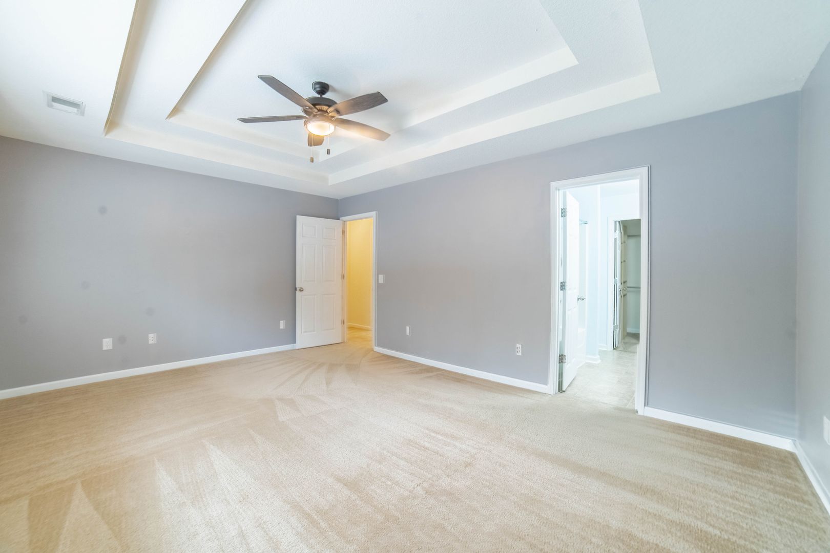 - Spacious master suite with double tray ceilings, dual vanities, and a large walk-in closet with built-in shelving.