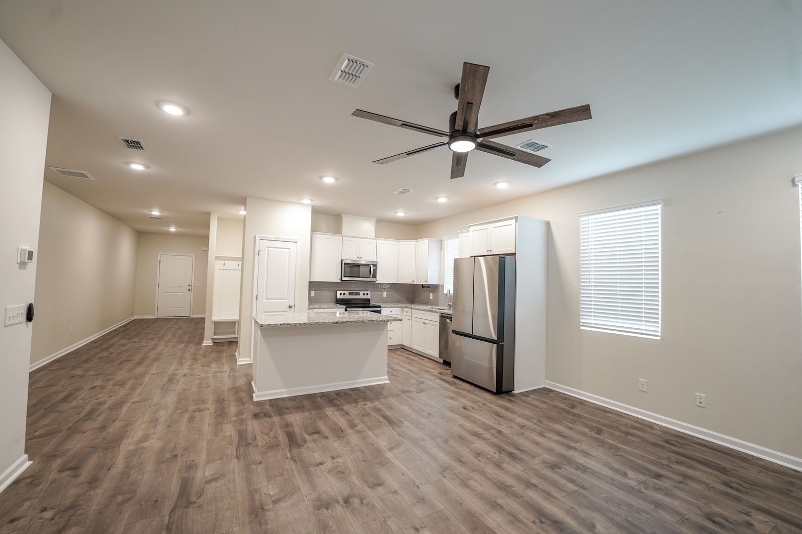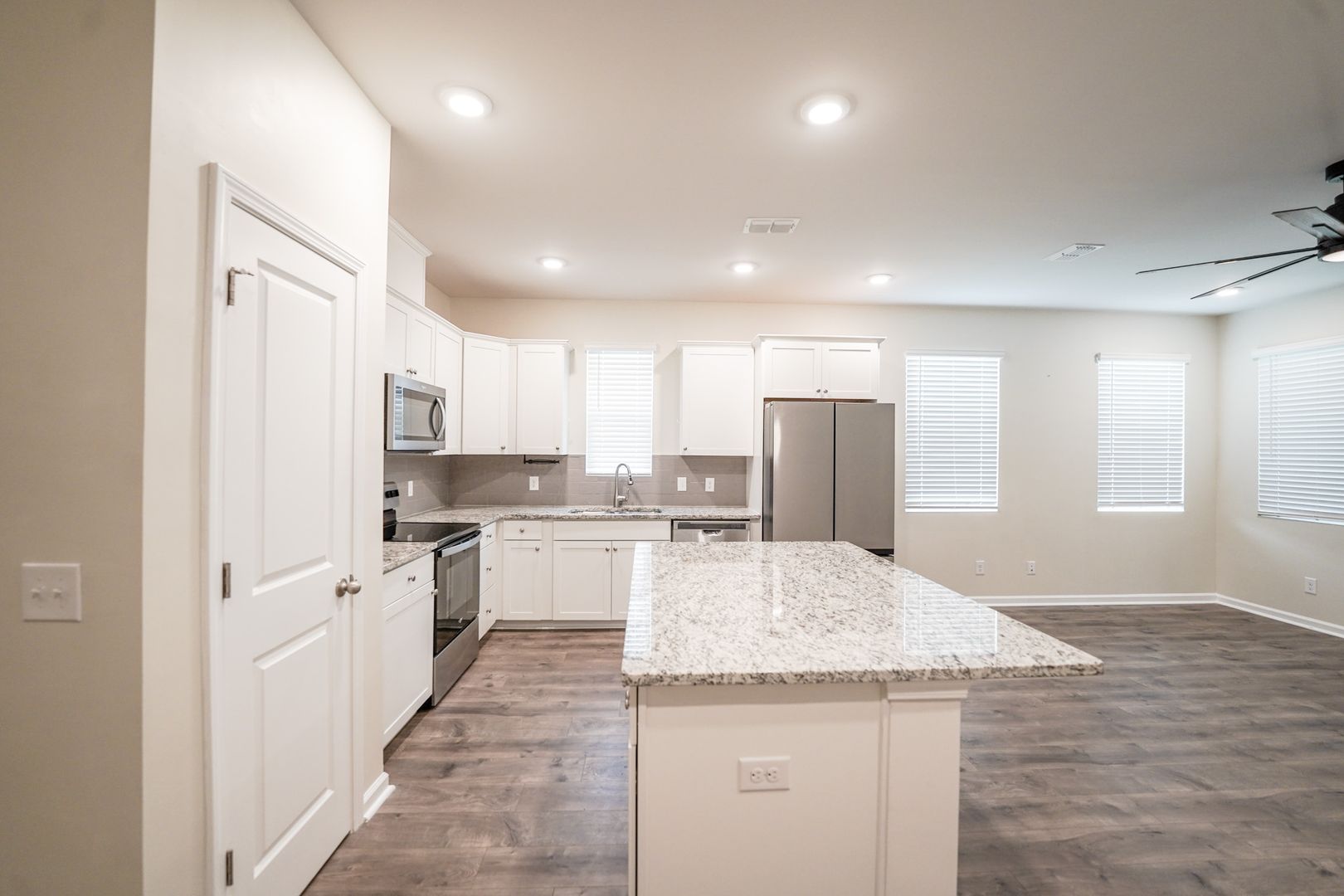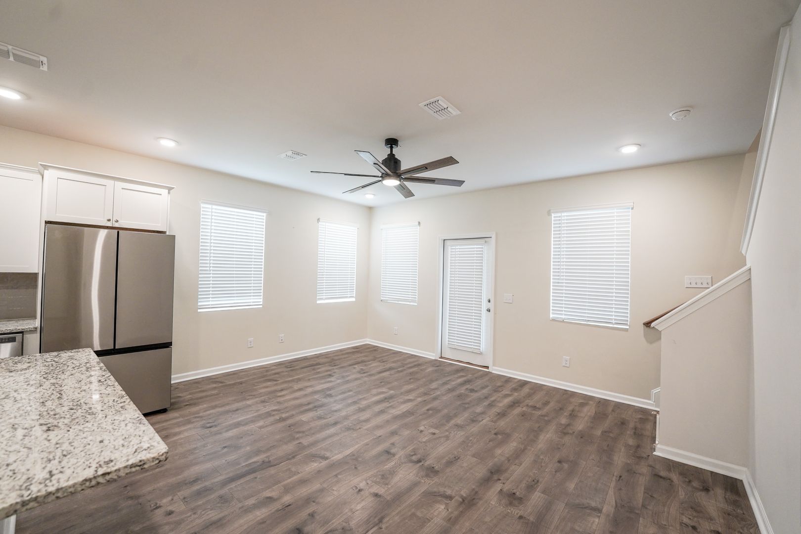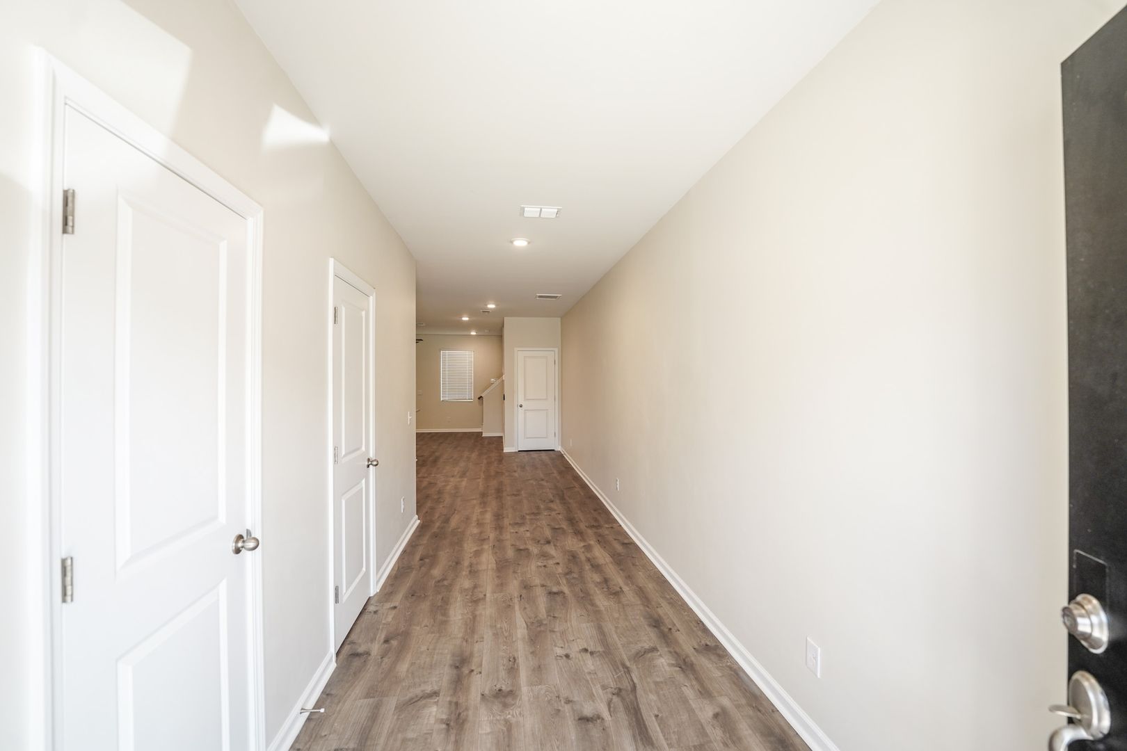 Welcome to this beautifully maintained end-unit townhome in the desirable Hunt Club community of Pooler. Built in 2021, this Energy Star certified home offers 3 bedrooms, 2.5 baths, and 1,654 square feet of thoughtfully designed areas. Step inside to find wood plank flooring and fresh paint throughout the main level, complemented by granite countertops, stainless steel appliances, and white cabinetry in the kitchen. The open-concept layout flows seamlessly into a cozy screened-in porch—perfect for morning coffee or evening relaxation. Upstairs, you'll find three carpeted bedrooms, including a spacious primary suite, and a convenient laundry room with washer/dryer hookups. Additional features include recessed lighting, high ceilings, a programmable smart thermostat, and blinds on all windows and doors. Enjoy access to a community pool and benefit from a one-car garage with automatic opener. Located on a 3,049 sq ft lot, this townhome blends comfort, efficiency, and style in a prime Pooler location.