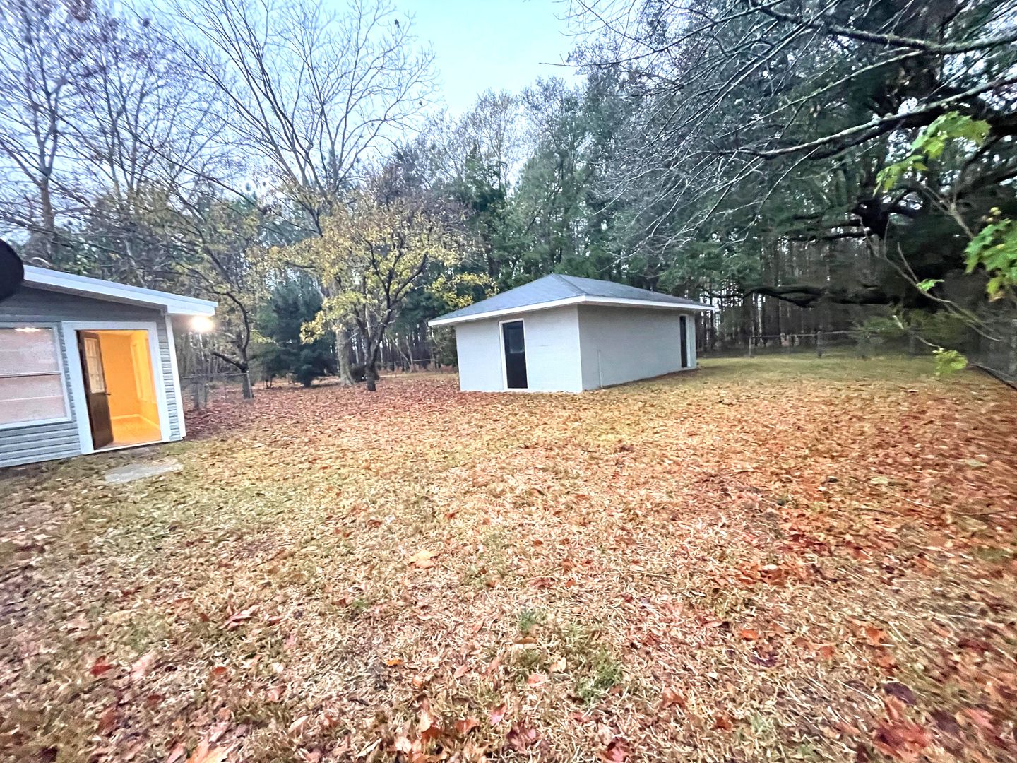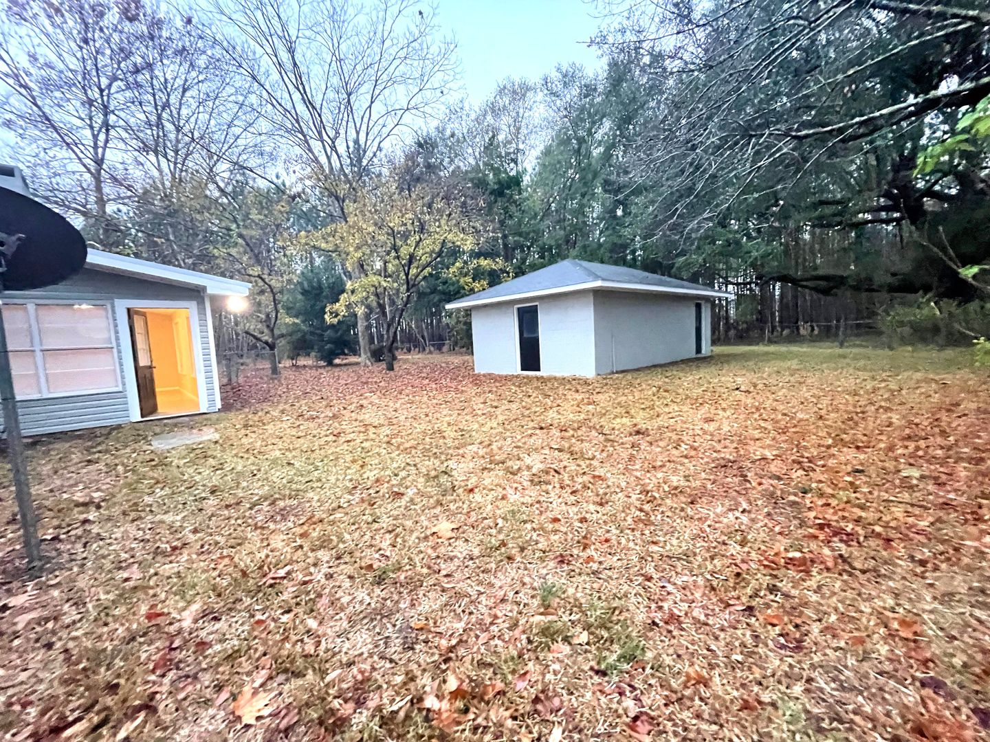 - Large open yard with a concrete block workshop and separate equipment shelter