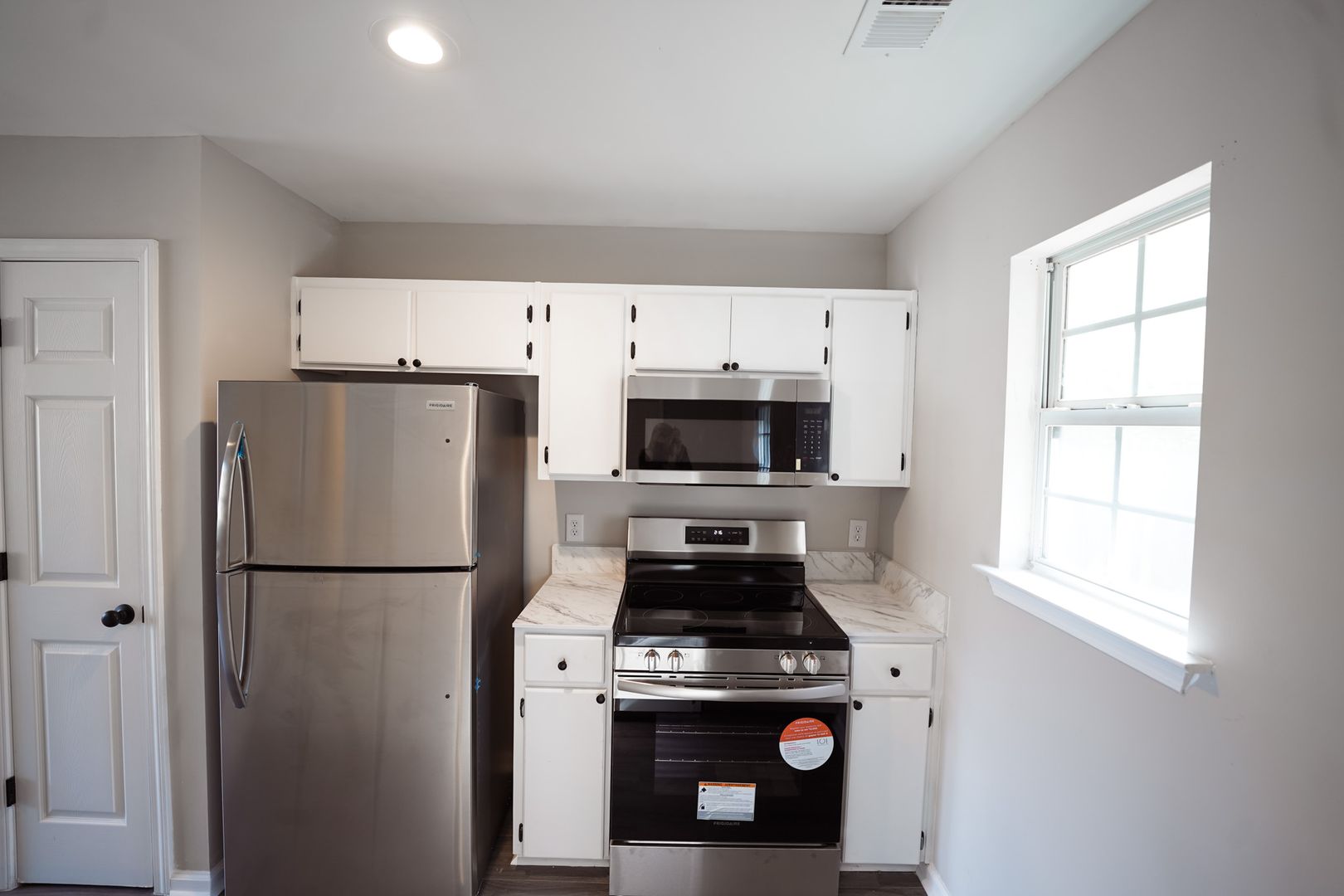 - Stainless-steel appliances and fresh paint in every room add a contemporary touch.