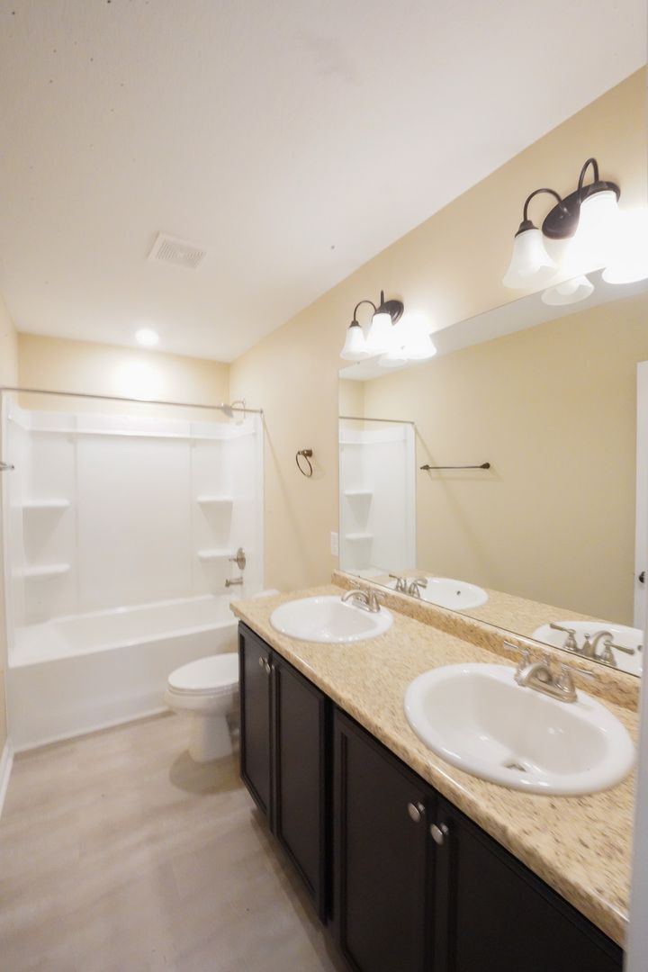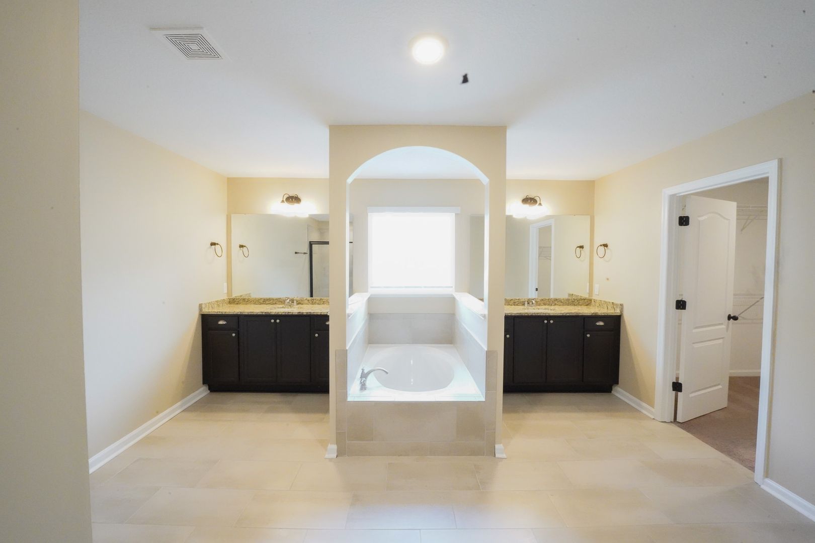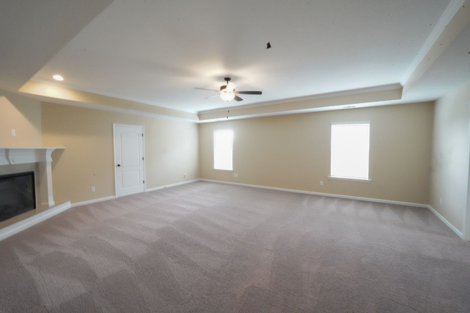 Stunning 6-bedroom, 3 bath home in Guyton! Entering the home, you find a curved staircase, large dining room with coffered ceilings. Downstairs there is a great room with an electric fireplace. The kitchen has an oversized granite island, granite countertops, double oven, tile backsplash, & cooktop. Also, downstairs is a bedroom with full bath. The spacious master suite has a sitting area and electric fireplace! The master bath has a garden tub, separate shower, double vanity, and large walk-in closet. The 4 additional bedrooms and laundry room are all upstairs. The backyard has a concrete patio with ceiling fan, and the home includes a sprinkler system.
