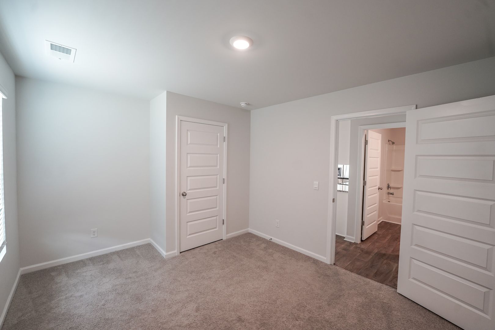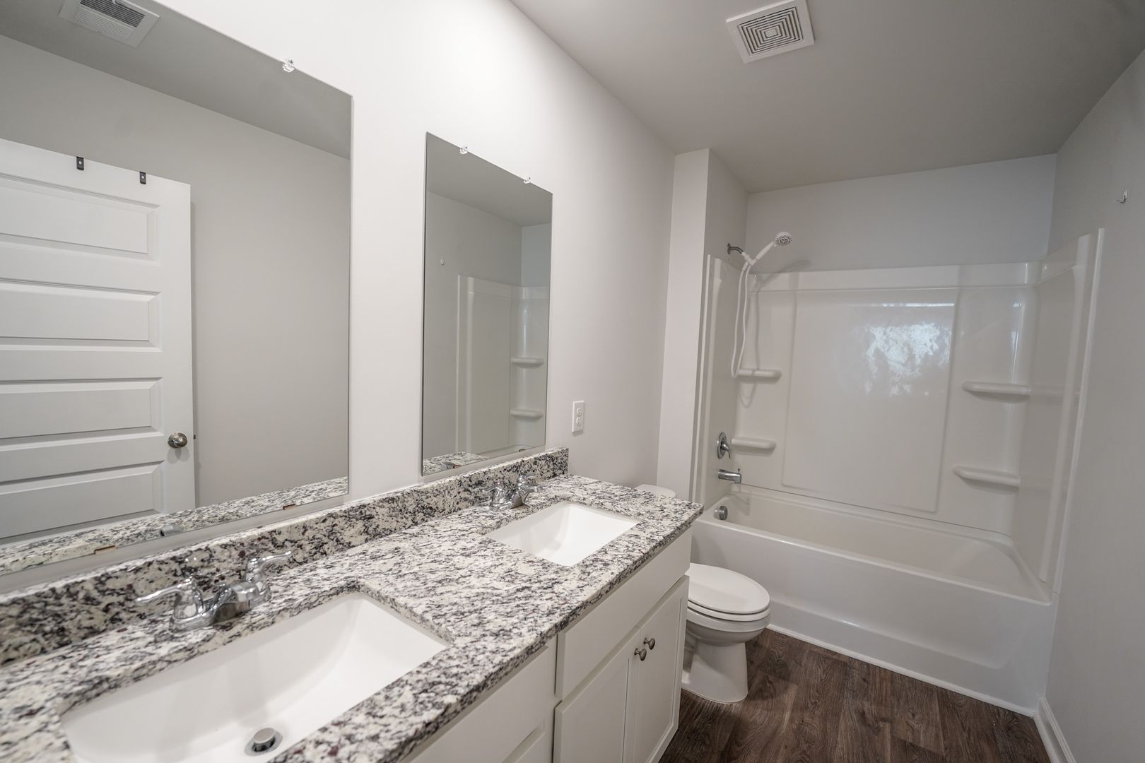 - Primary suite with walk-in closet and spa-style bath with dual sink vanity, 5-ft walk-in