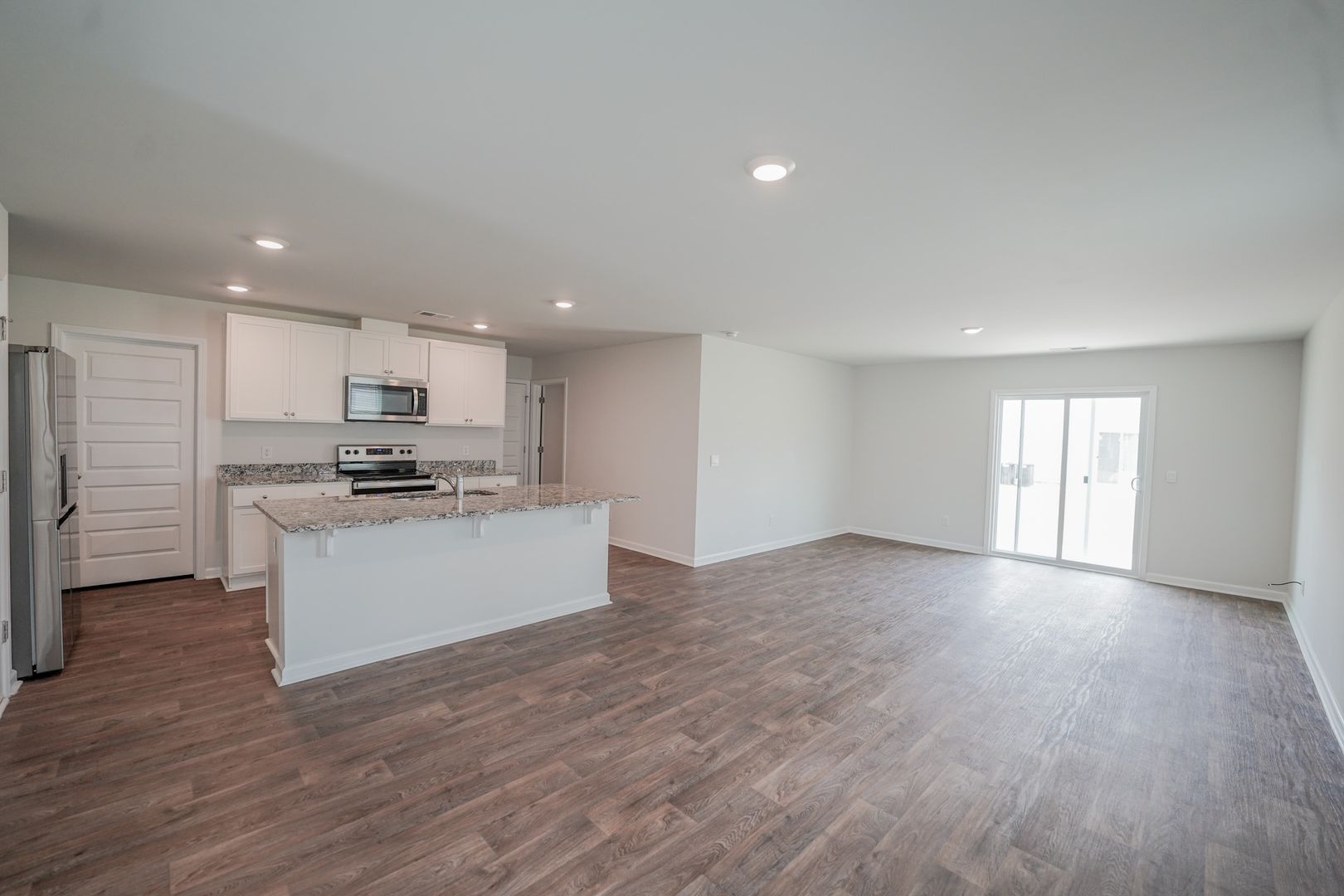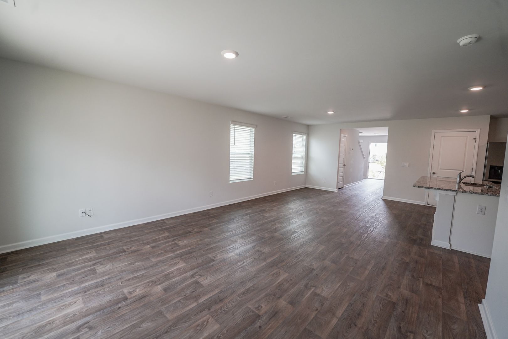- Open floor plan connecting entry, living area, and kitchen