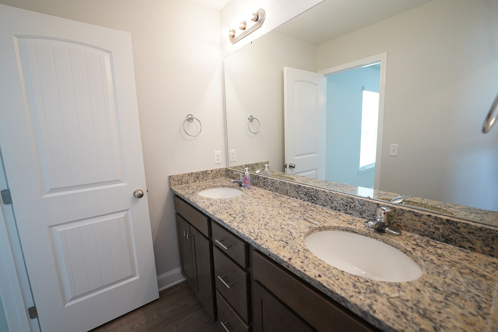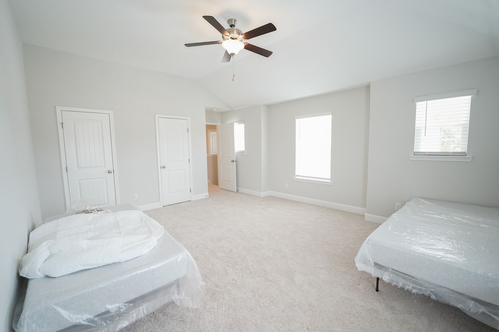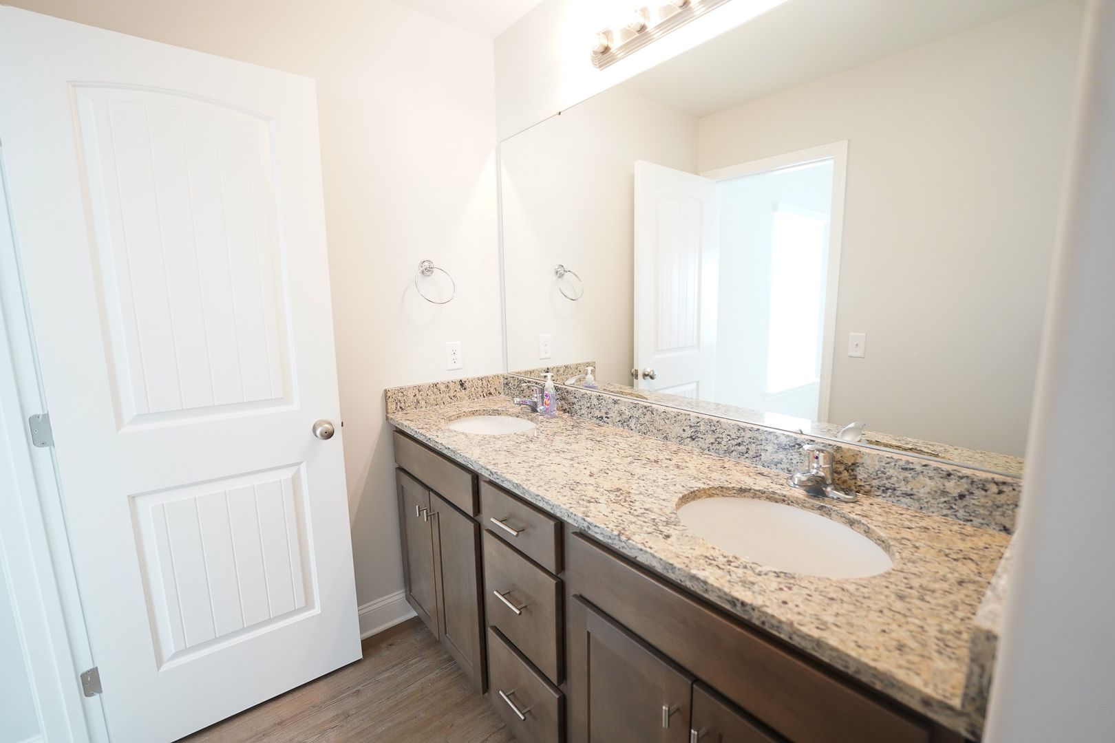 - Primary suite with walk‑in closet, dual vanities, and walk‑in shower