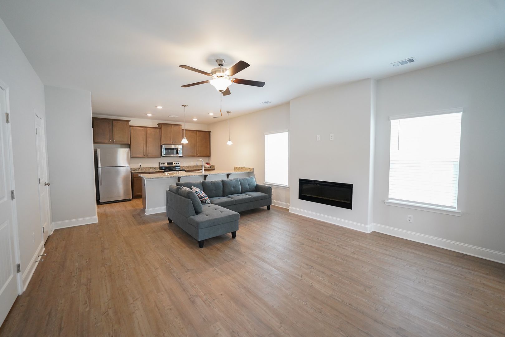 - Gourmet kitchen with granite countertops, stainless‑steel appliances, ample cabinet space, and overlooks the living area