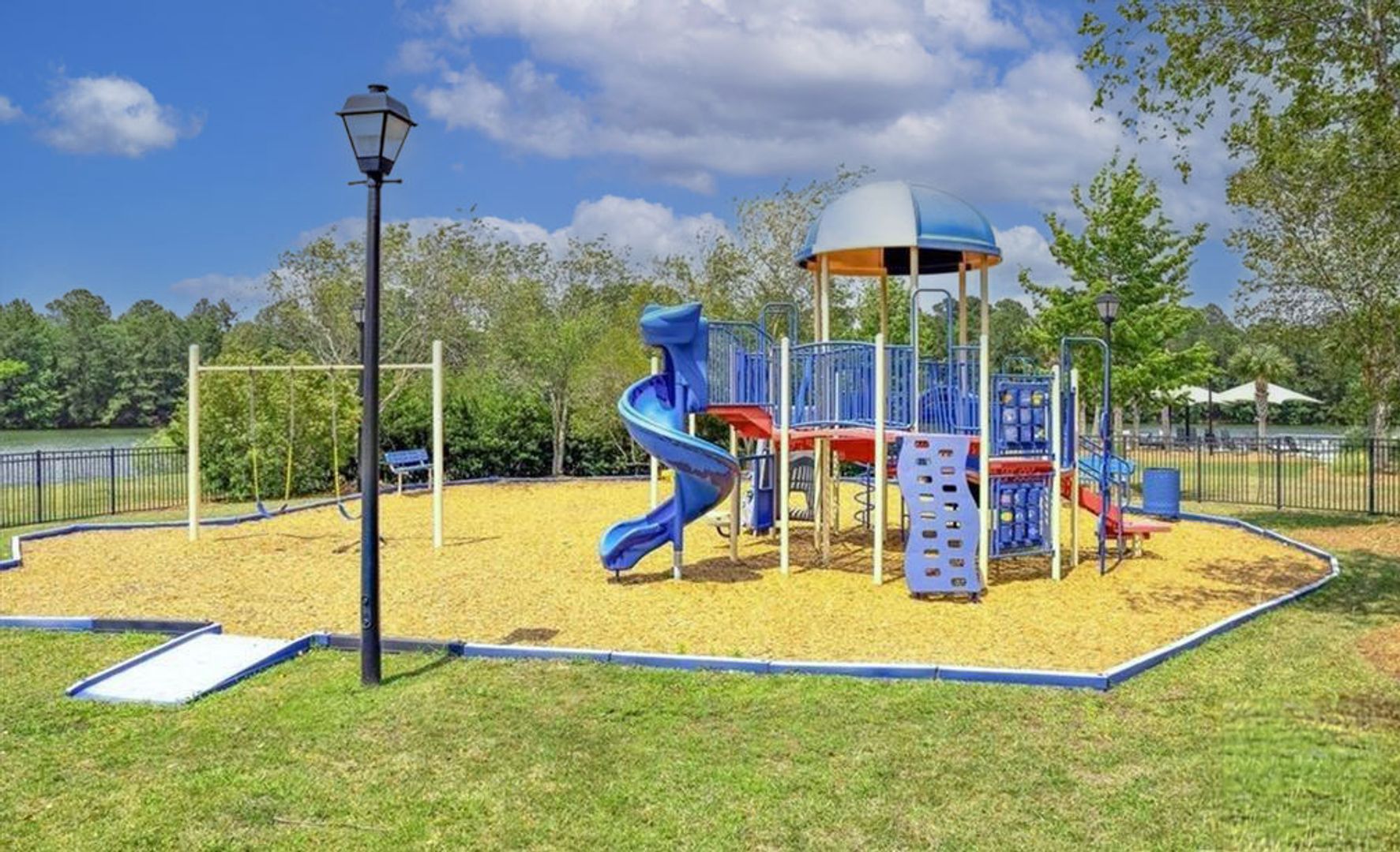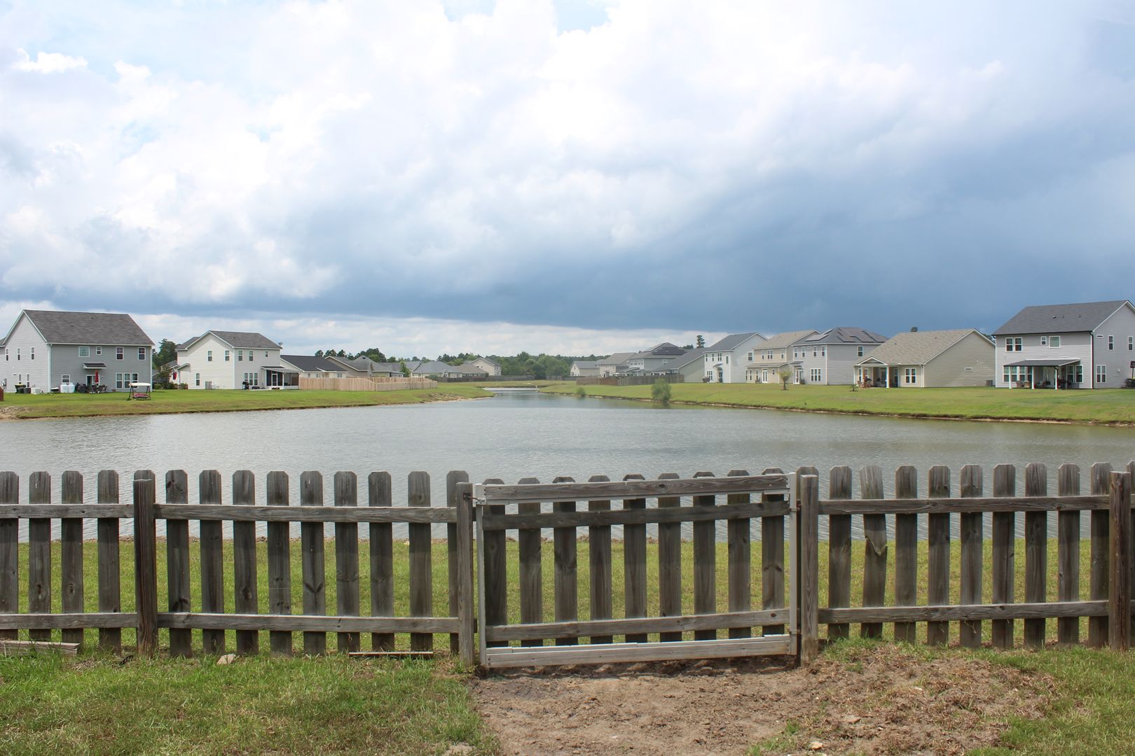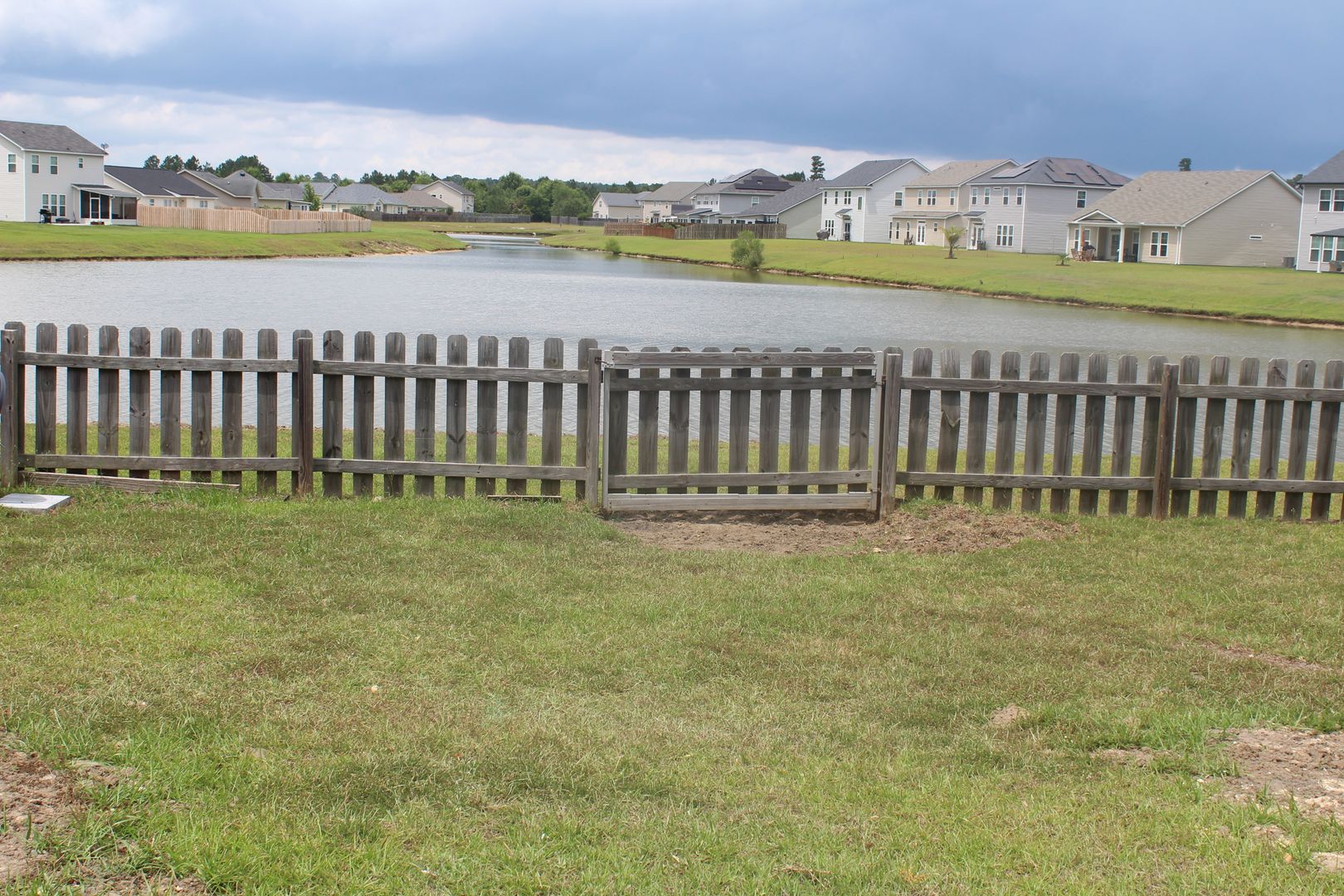 - Fenced backyard overlooking a tranquil lake perfect for relaxing outdoors