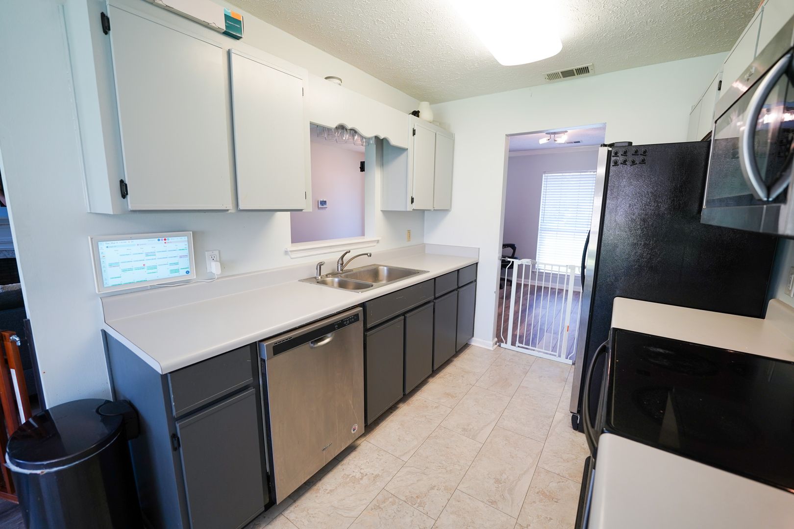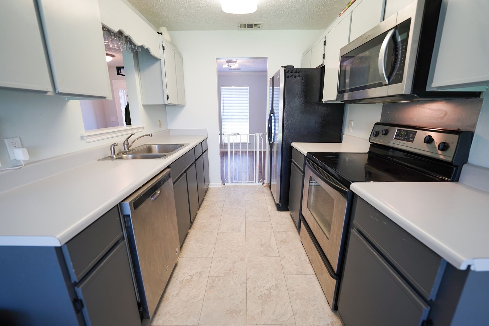 - Kitchen with stainless steel appliances, ample cabinet space, and generous counters