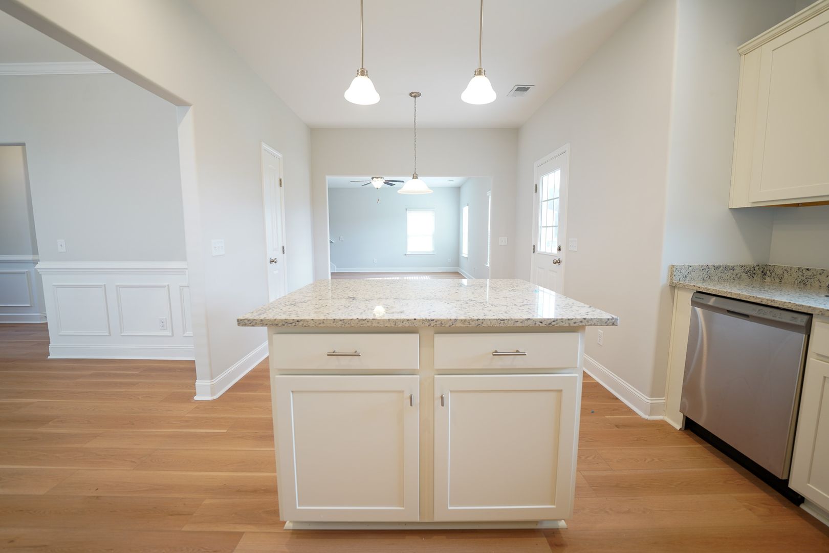 - Kitchen with granite island, upgraded cabinets, and stainless-steel appliances