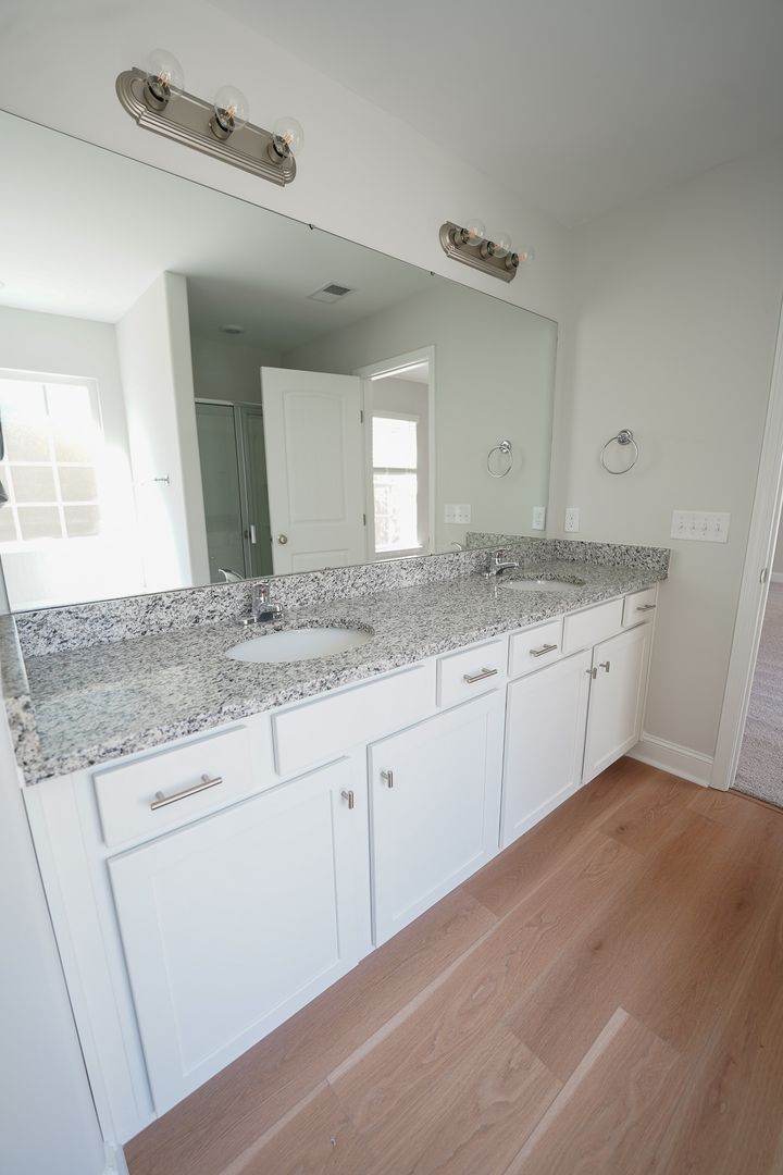 - Primary bath with dual comfort-height vanities, soaking tub, and separate shower