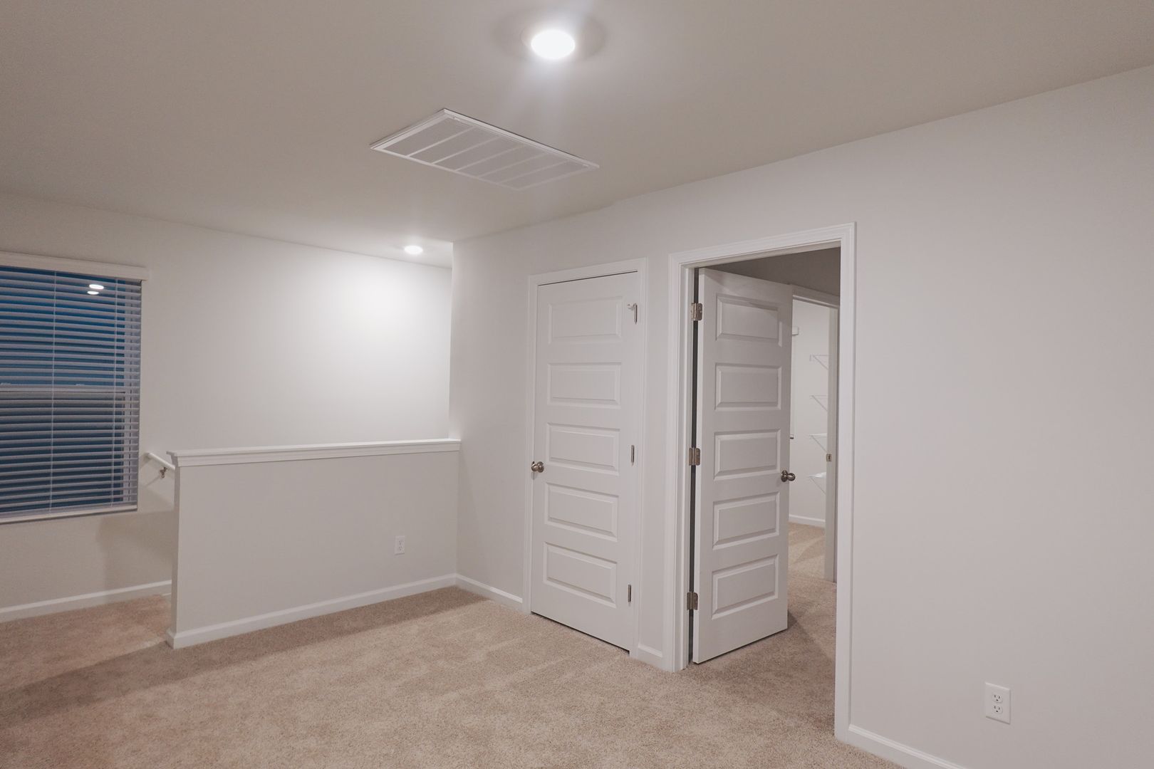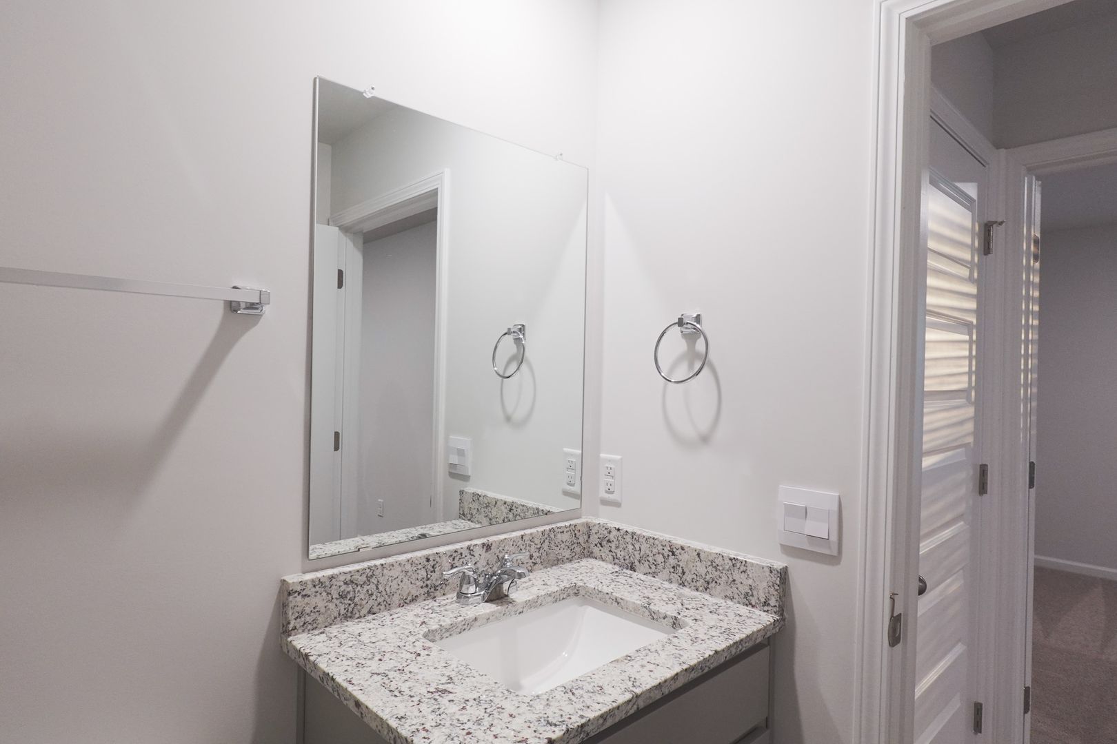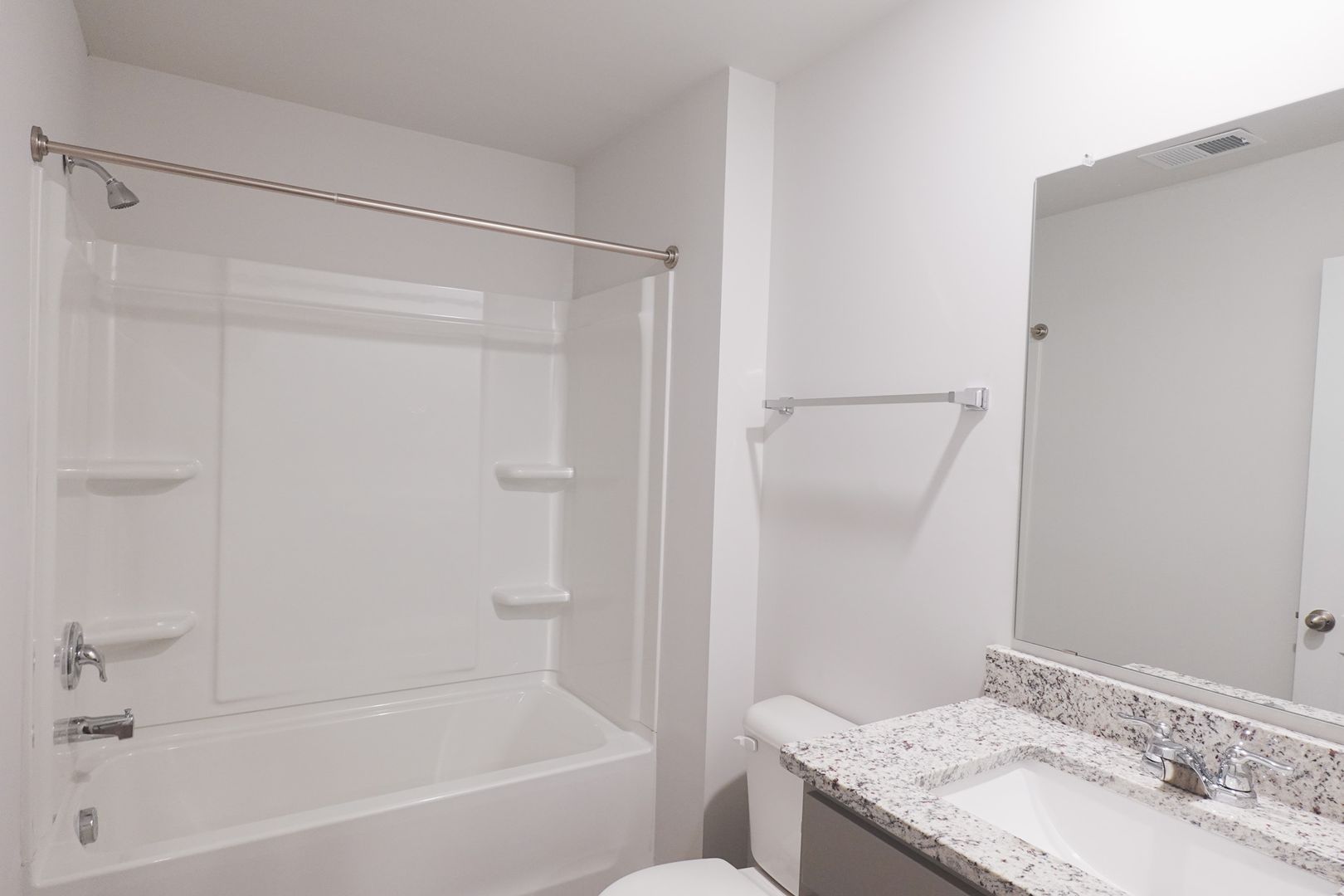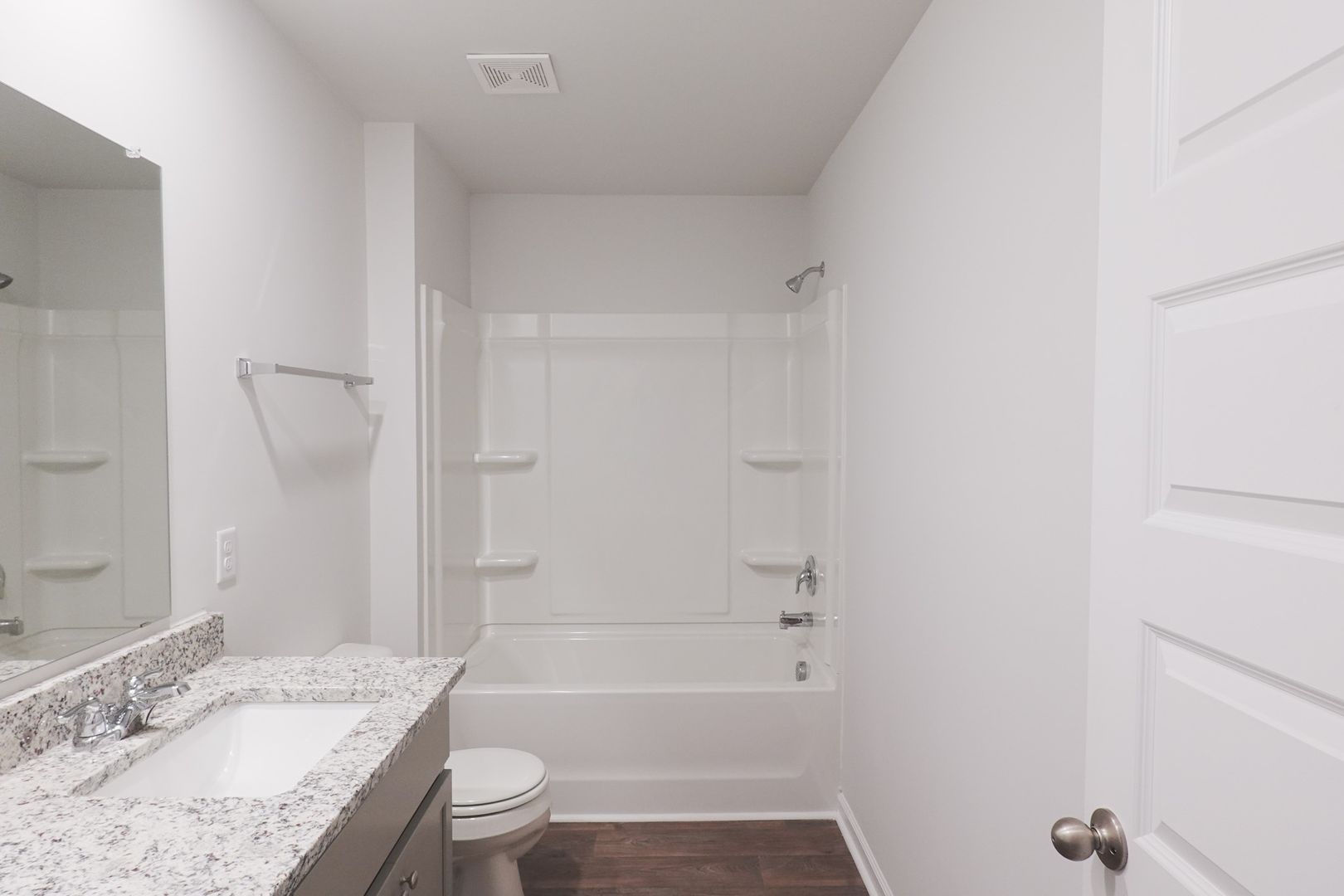 - Spacious primary suite with walk-in closet, dual-sink vanity, 5-ft walk-in shower with glass door, private water closet