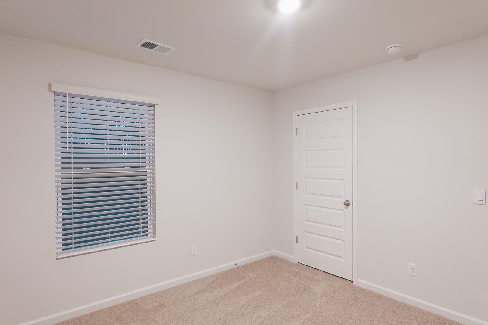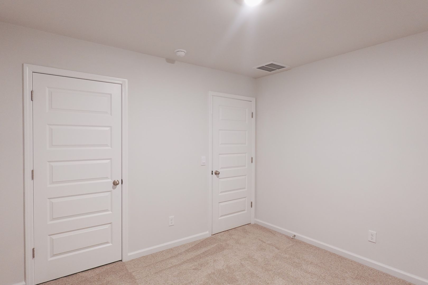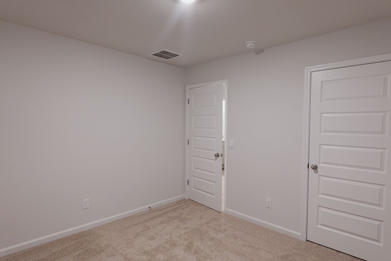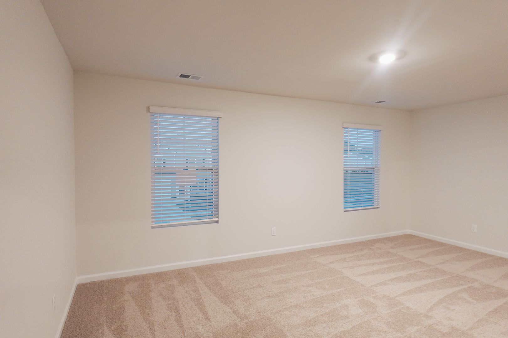 - Spacious primary suite with walk-in closet, dual-sink vanity, 5-ft walk-in shower with glass door, private water closet