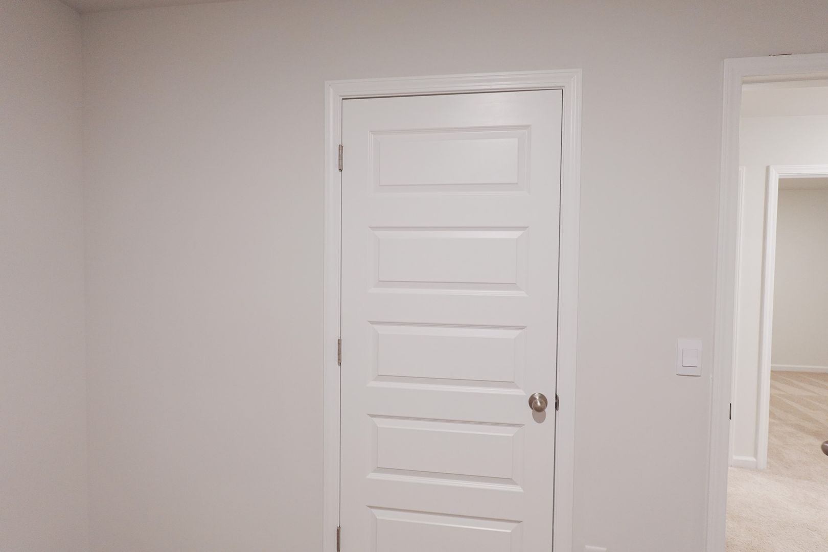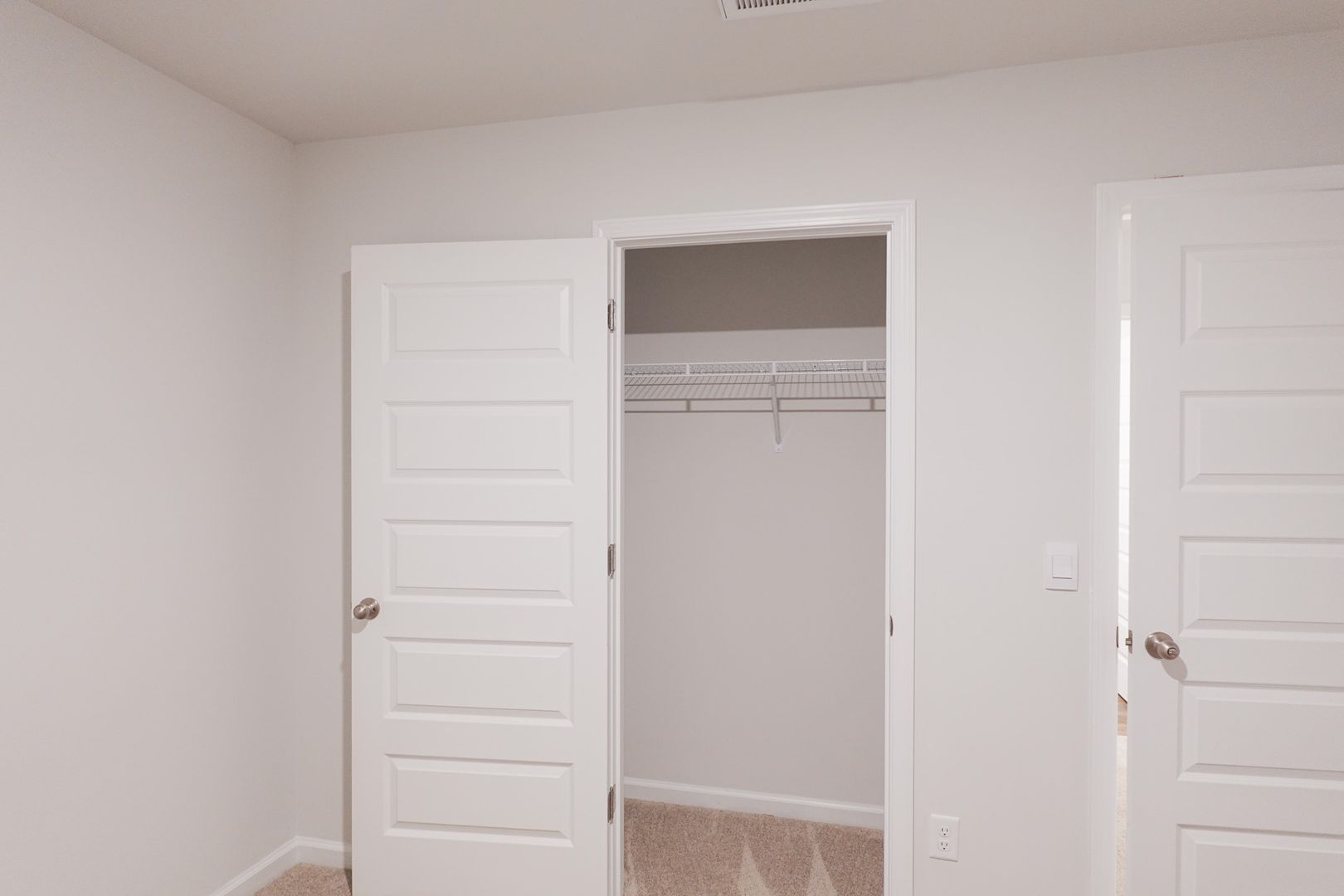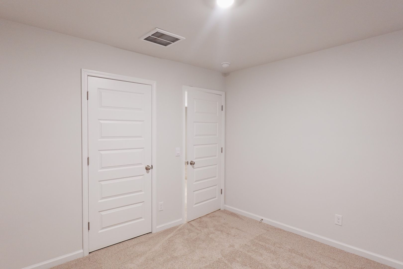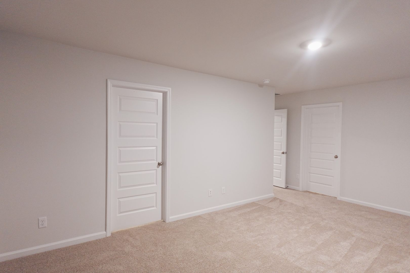 - Spacious primary suite with walk-in closet, dual-sink vanity, 5-ft walk-in shower with glass door, private water closet