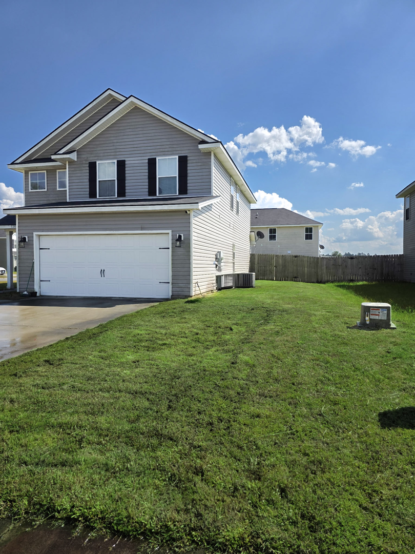 Upstairs, the primary suite includes a walk-in closet and a private bath, while three additional bedrooms share a full bathroom. A two-car attached garage complete this home. Located just minutes from Fort Stewart, shopping, and schools, this home offers a perfect blend of comfort, location, and value.