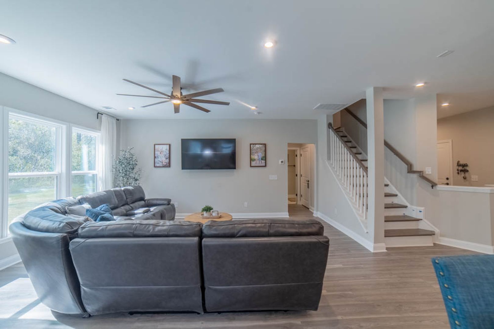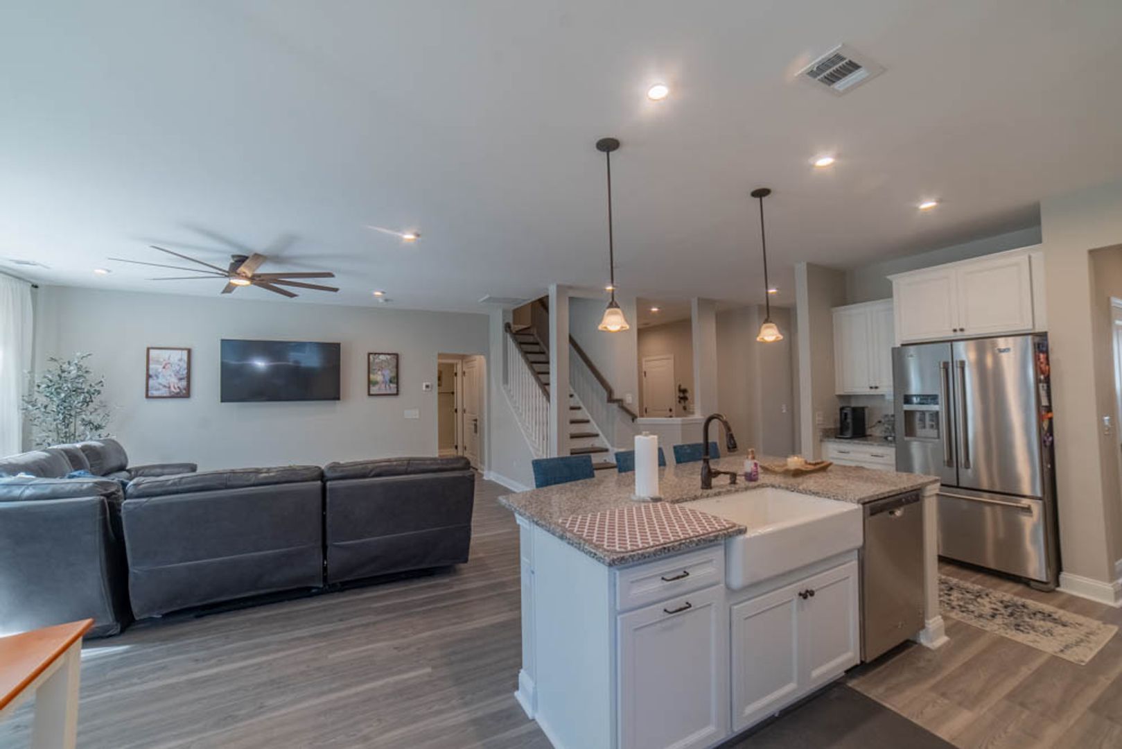 - Kitchen and living room filled with natural light, creating a warm and inviting atmosphere