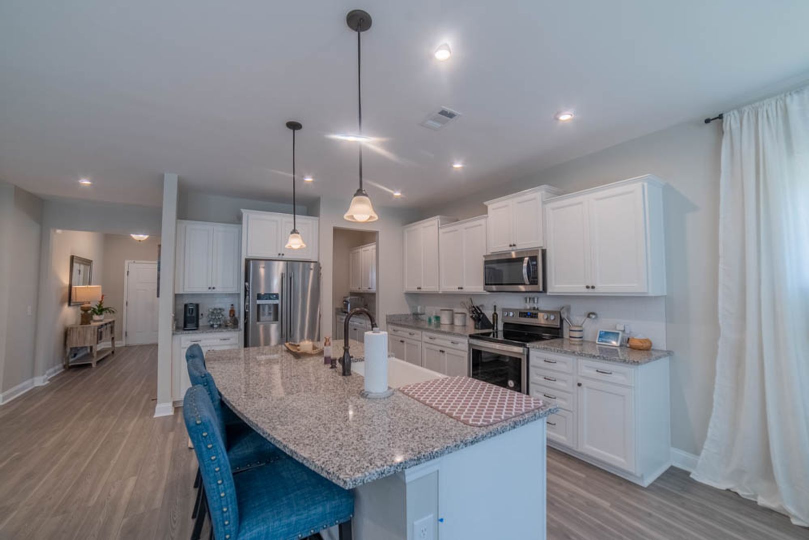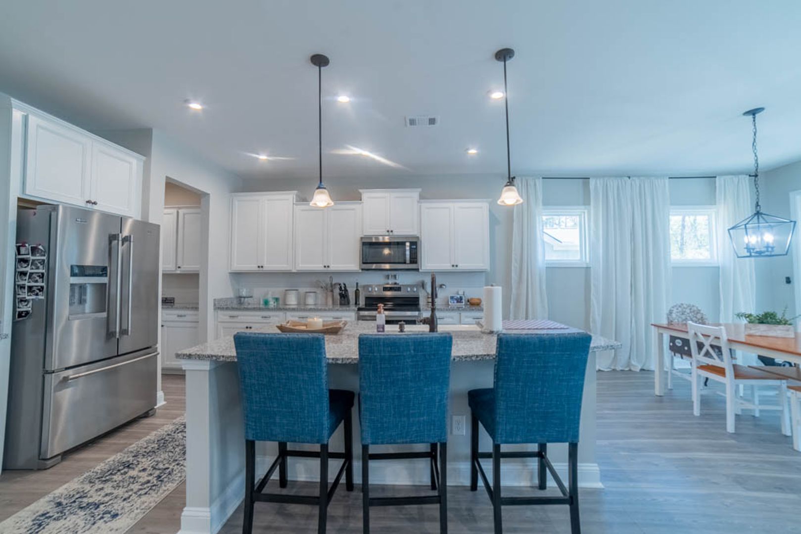 - Elegant dining room with a convenient pass-through butler’s pantry for seamless serving