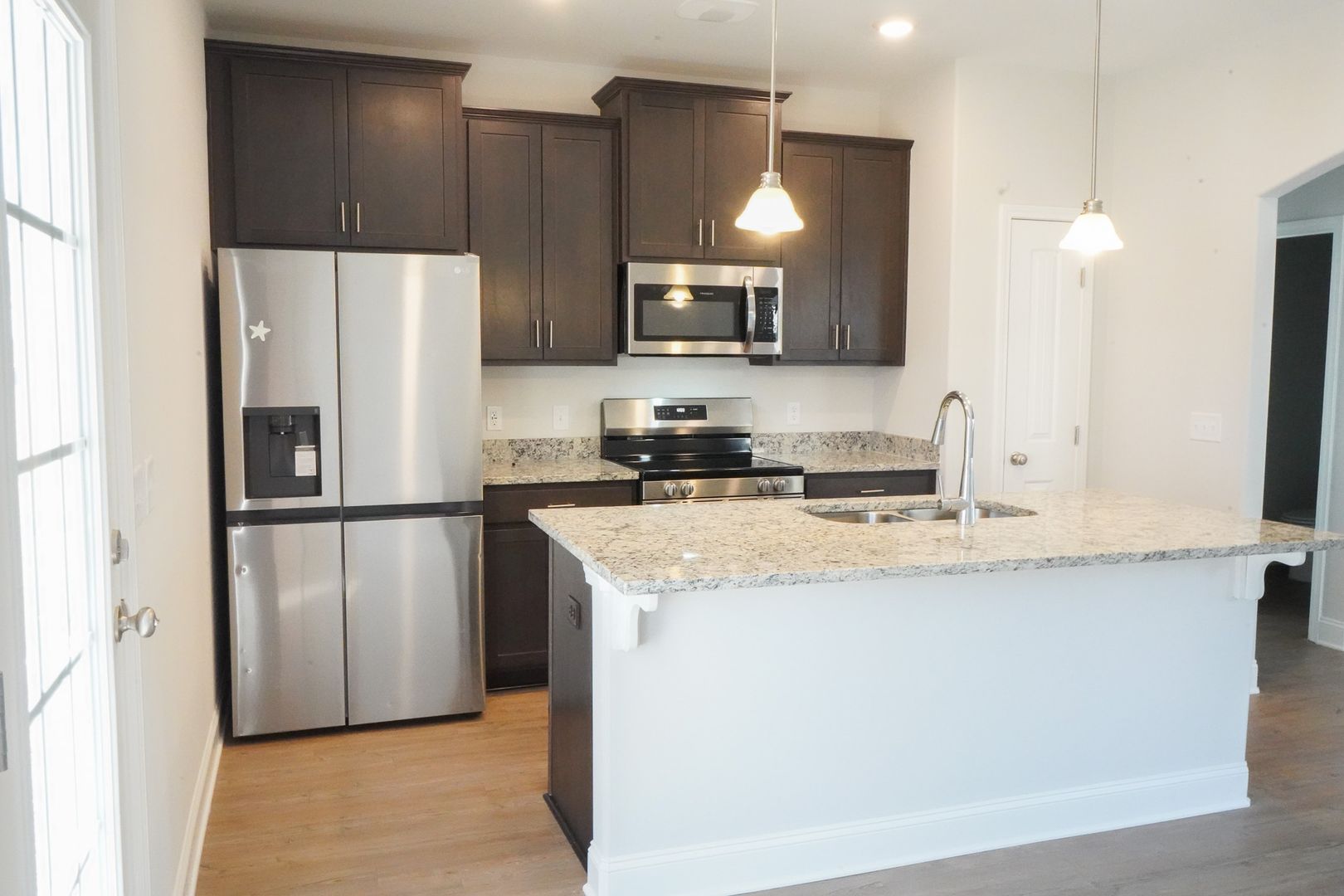 - Spacious layout with vinyl flooring throughout the first floor and wet areas