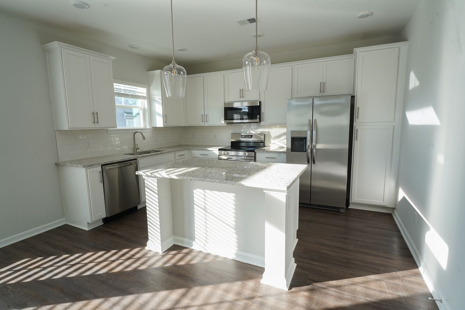 - Chef’s kitchen with a large center island, stainless-steel appliances, ample storage, and a walk-in pantry.