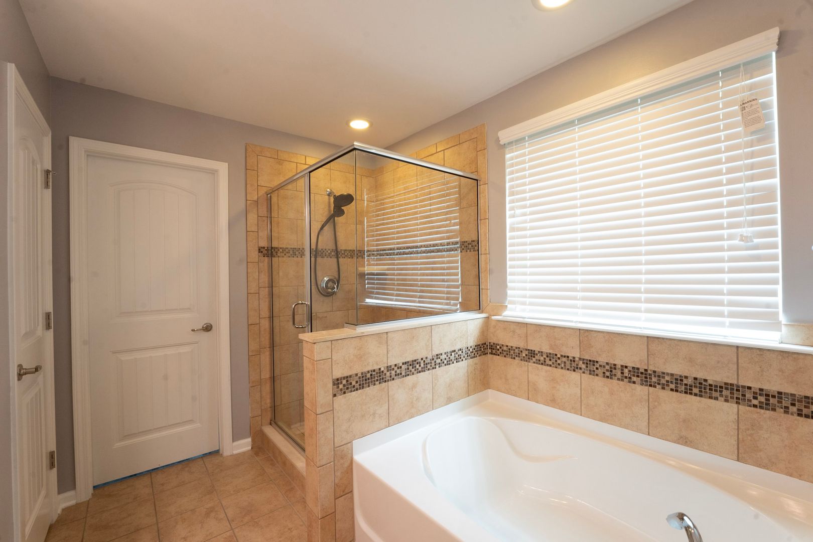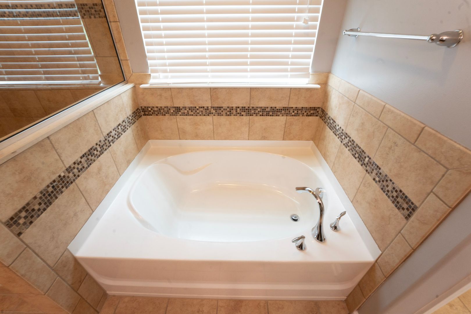 - Master suite with two closets (including a large walk‑in), walk‑in shower, and soaking tub