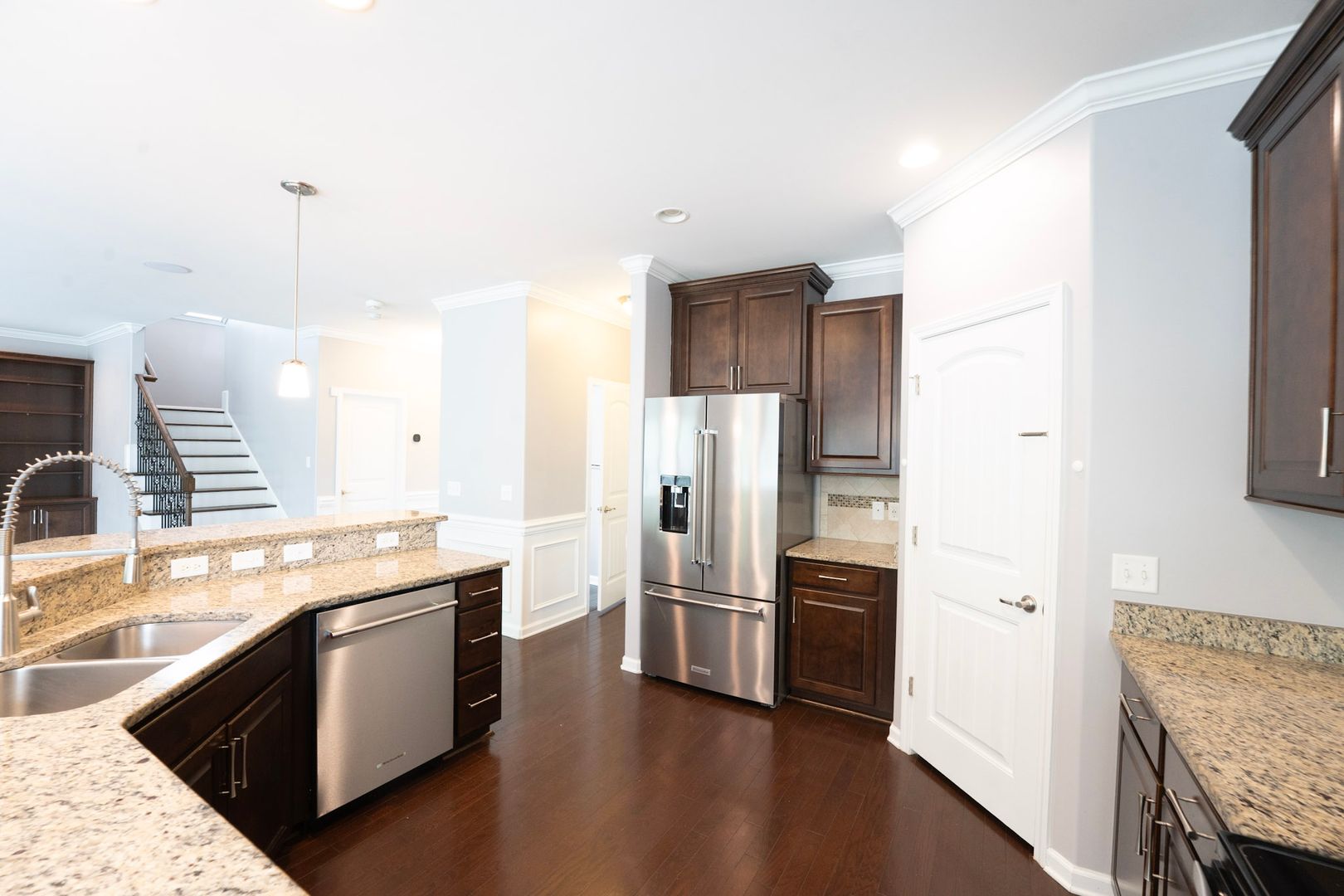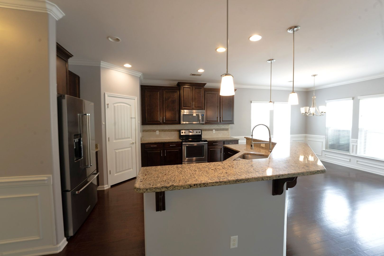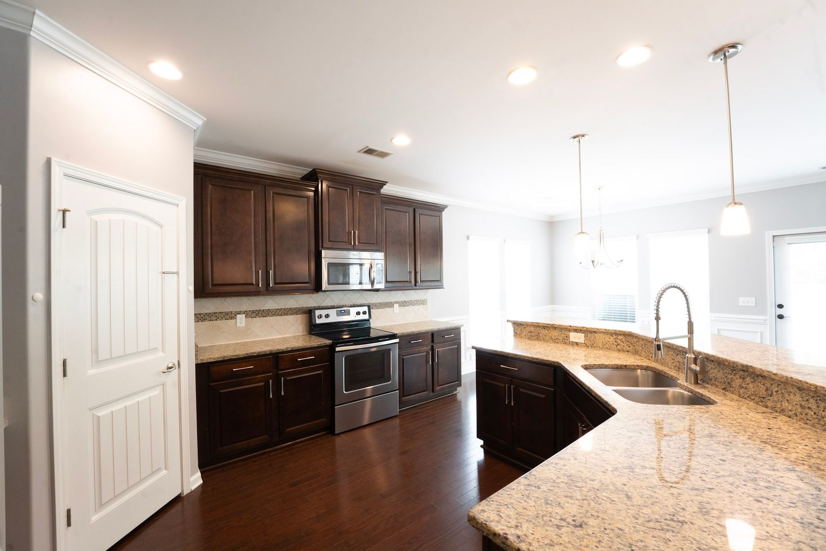 - Kitchen with granite countertops, tile backsplash, new refrigerator, new dishwasher (to be installed), microwave, electric stove, and ample cabinet space