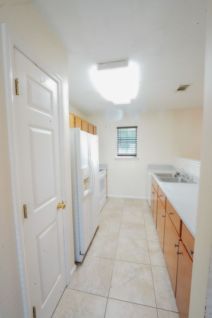 Step into the well-appointed kitchen, complete with sleek white appliances, creating a bright and inviting atmosphere. The adjacent dining area makes mealtimes a breeze.